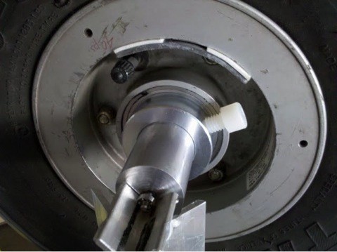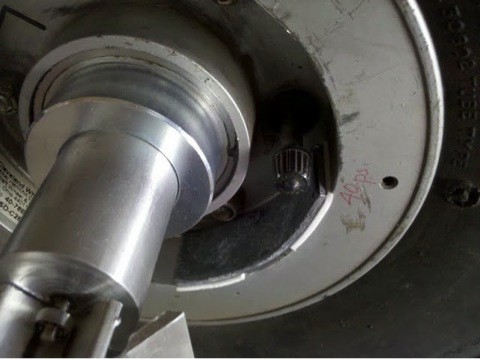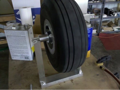 My plane has always had a little vibration around 22 to 24 knots. This has been true with several sets of tires, from Van's cheapies to Michelin to my current favorite, retreads from Desser. I've never worried too much about it, since that speed is a bit faster than typical taxi speeds, and during takeoff and landing, one passes through those speeds fairly quickly. However, after the last annual, during which I rotated the tires inside to out, the vibration showed up a fair bit more noticeable. In fact, it was quite noticeable right after landing as well, probably picking up the 2x excitation speed of 46 knots. I built the balancer shown in the pictures below. I used a couple very small ball bearings for minimal friction, a precision 1.25" shaft, and a couple collars to clamp the wheel bearings snugly. I put the first wheel on, and it lazily found a preferred position. It didn't seem like a lot of imbalance, but it took a fairly sizable piece of lead (don't tell California) to bring it to balance (the small wheel diameter). The other wheel took a piece perhaps 1/4 the size of the one in the picture. I used some 3m double sticky pads to attach the lead. I went out flying, with some taxiing up to 28 knots, and no vibration at all! On landing, I held the speed up down the runway, exploring the whole range of speeds, and not the slightest sign of any vibration. What was quite a surprise is how little imbalance there seemed to be when I first put the wheel on the balancer. I really would not have thought it to be a problem, until I saw how much lead it took. The small bearings, without seals, are key, as anything larger probably would have had too much friction.
