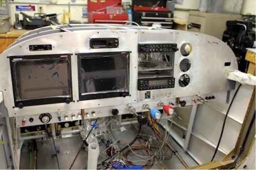 I am finally to one of the more enjoyable (but challenging) parts of my RV-7 project: the instrument panel. Finally it seems here things begin to come together and all of that planning and dreaming of a panel full of goodies starts to take shape. Recently I had SteinAir cut out my panel and now I was able to start to put some of the cool electronic doo-dads in place at least temporarily.