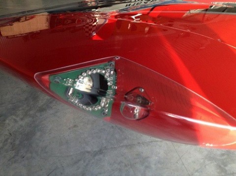 For lighting, I really liked the recessed lights delivered with the standard 7/8/9/etc. wingtips, but remember - this is a -6A which provides far more fun for your building dollar. I hacked the tips apart and installed the Airtech insets from Van's, then nestled the Kill-a-Cycle/CreativeAir LED position lights inside. The strobe lights are Nova units, using a Whelen lens to provide the correct distribution of light. The strobe is recessed slightly and mounted on sub-surface shelf to provide clearance from the clear plastic lens and also to stay out of the way of the landing/taxi light.