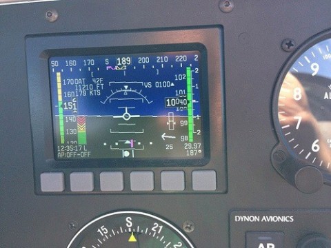 People invariably ask if it is really as fast as Van's claims. I didn't build it for speed (I typically cruise at ~150 KTAS to save fuel), but I did take it up high for a speed run after one of the guys at the paint shop asked how it did at 10,000. I've done numerous speed runs using the GPS and the NTPS spreadsheet, and I believe the Dynon to be accurate - while far from the fastest RV around, I'm more than happy with this! (please excuse the uncentered ball and slight altitude deviation - this was the only photo I took that was in focus. Normally the ball is centered during all phases of flight thanks to the adjustable rudder trim).