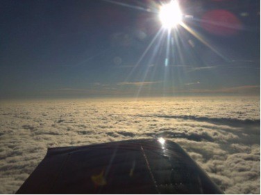Last year on the way back from Lake Elmo I went well North of Class B and up to 6500, then 8500, then 10500. There was a broken cloud layer between each of those altitudes and the sunset between each layer was awesome, surreal and un-earthly. Reds on purples on deepest blues, unimaginable shapes and combinations of dim and bright, with no universe seen above and no earth seen below. Being an IFR pilot in an IFR equipped plane, it was peace of mind to know if I got stuck I could call approach and let down through IMC. But I didn’t have to, because the floor below me was a disconnected maze of holes followed by another floor of holes and then another floor of holes, the final seconds of sunset lighting my way back to earth through the maze, finally breaking out to see the lights of cars streaming along highways, and lonely porch lights of country homes, and somewhere down there were my friends and family. During those kinds of flights I am humbled that I have been allowed in this life to experience it, and I realize out of the millions and millions of Twin Cities gravity-bound, earth-constrained, soul-searching wanderers, I am only one of a few hundred who could even have the opportunity, likely only one of a half dozen who experienced that proximal sky, and surely the only one who was given witness to precisely that stream of space and time. It is a mix of emotions, melancholy and grateful at the same time.