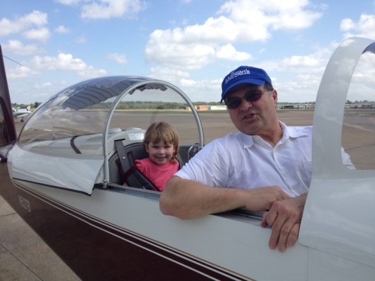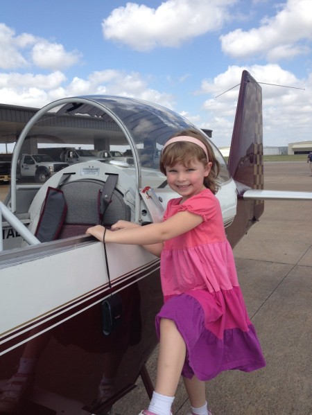 Tom Briden with granddaughter on her first flight. My RV8A was completed in 2003. I have about 800 hours so far and fly to all places in the USA.
