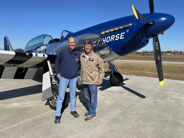 I have been desiring a flight in a Mustang since I first saw one at Oshkosh in 1971. So my wife Deb agreed it would be a great 70th birthday present. It was an awesome experience and Jive was a great instructor showing me some of the capabilities of the Mustang. The aircraft we flew, Crazy Horse, is a Cavalier TF-51 that is a converted two seat trainer with full controls and instruments in the back seat. Stallion 51 has two identical Crazy Horse TF-51s.